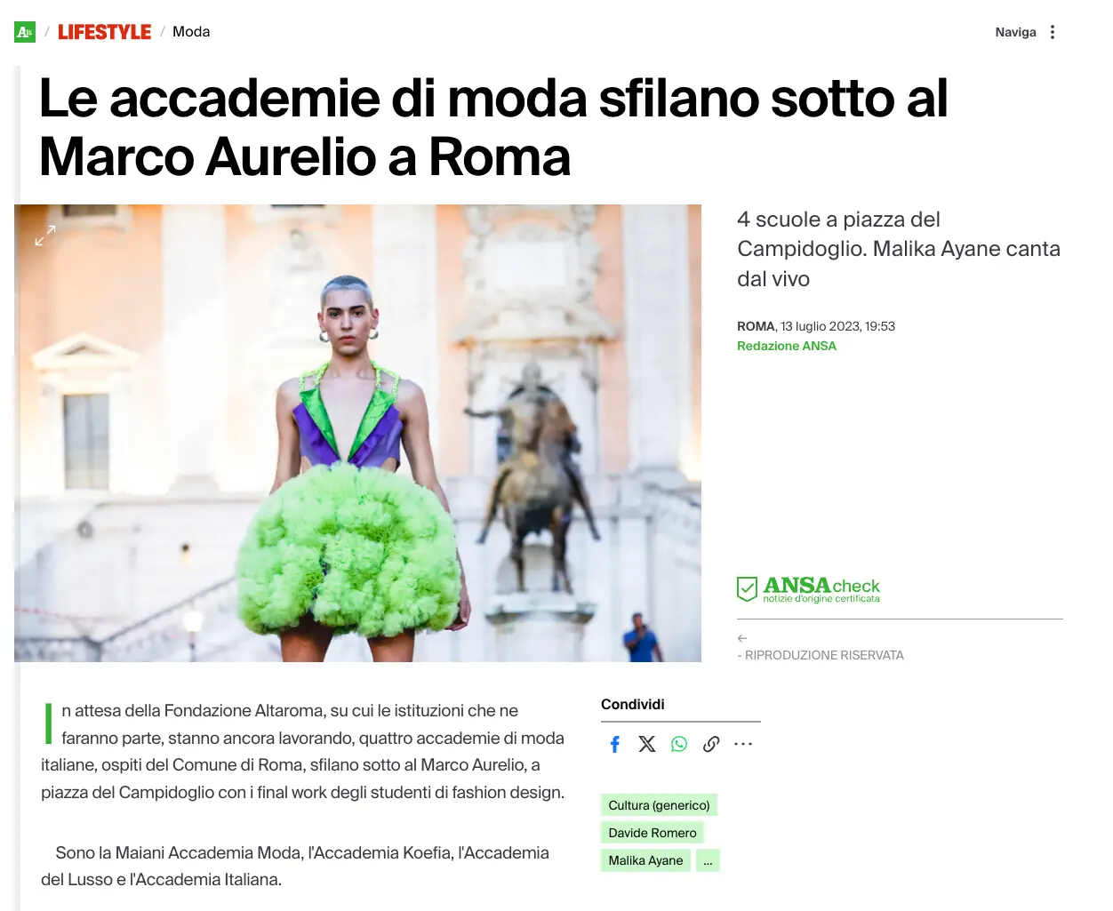 Nel 2023 ho avuto l’opportunità di partecipare come designer alla sfilata di Altaroma, a quella di Ensemble per un progetto di inclusività e ad una in Campidoglio che è stata tra tutte il mio trampolino di lancio. In quest’ultima sfilata, infatti, i miei abiti hanno avuto un importante impatto sulle persone che hanno iniziato a seguire le tendenze da me proposte, fino ad arrivare a volere creazioni realizzate da me. Così, con l’appoggio della mia famiglia, ho creato il mio brand, realizzando così il mio sogno, vestire le donne nel mondo.