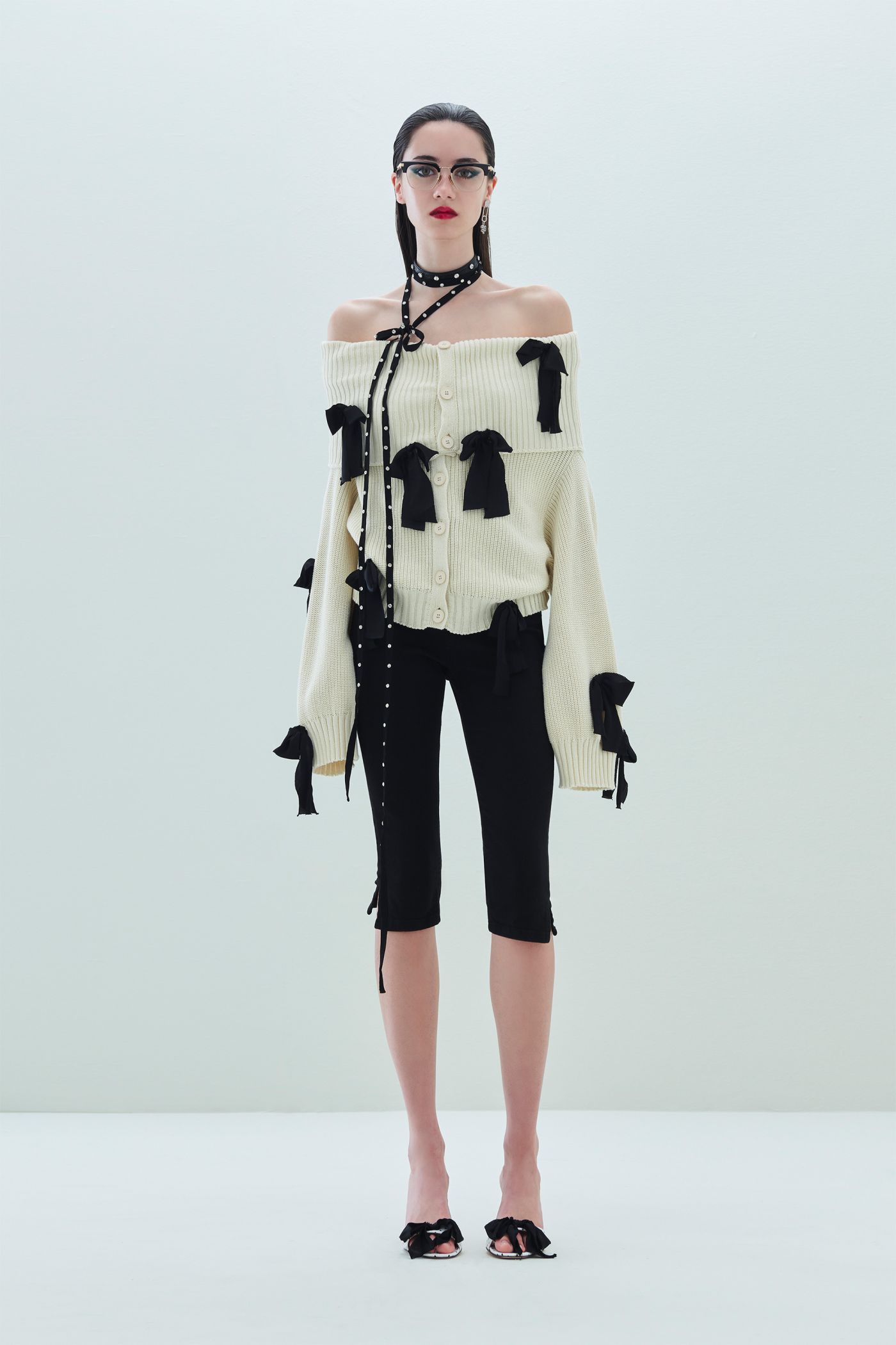 CARDIGAN GRACE IN MAGLIA DI COTONE, FIOCCHETTI SUL DAVANTI E SULLE MANICHE,
